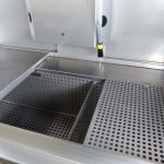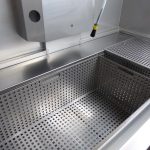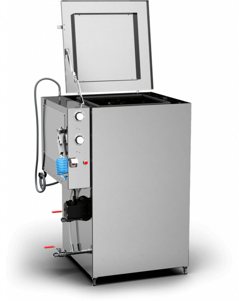 Parts to be cleaned can be placed in a large immersion tank and cleaned afterwards or at the same time manually on top of the immersion tank by using flexible gratings.
