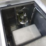 Solution: Based on our RWR-800-P, we have designed a washer which, with the help of specially arranged nozzle elements and holders, enables the simultaneous cleaning of the agitator as well as a paint container.