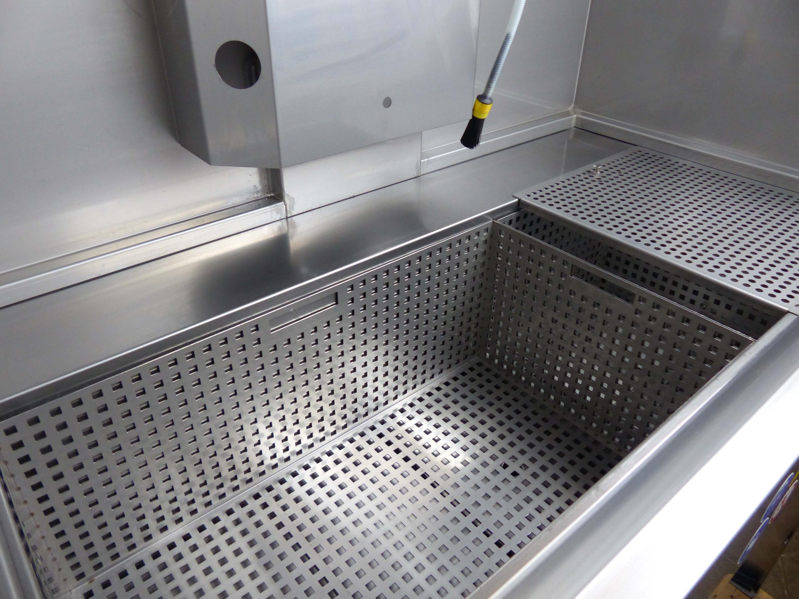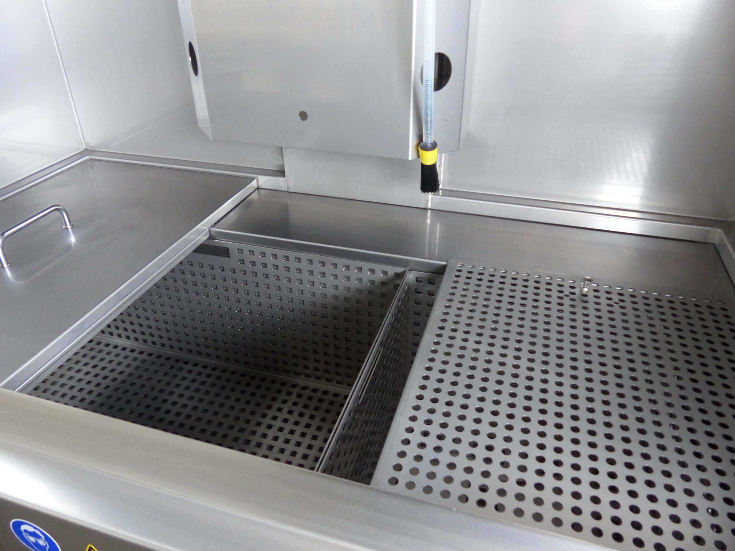 Parts to be cleaned can be placed in a large immersion tank and cleaned afterwards or at the same time manually on top of the immersion tank by using flexible gratings.
