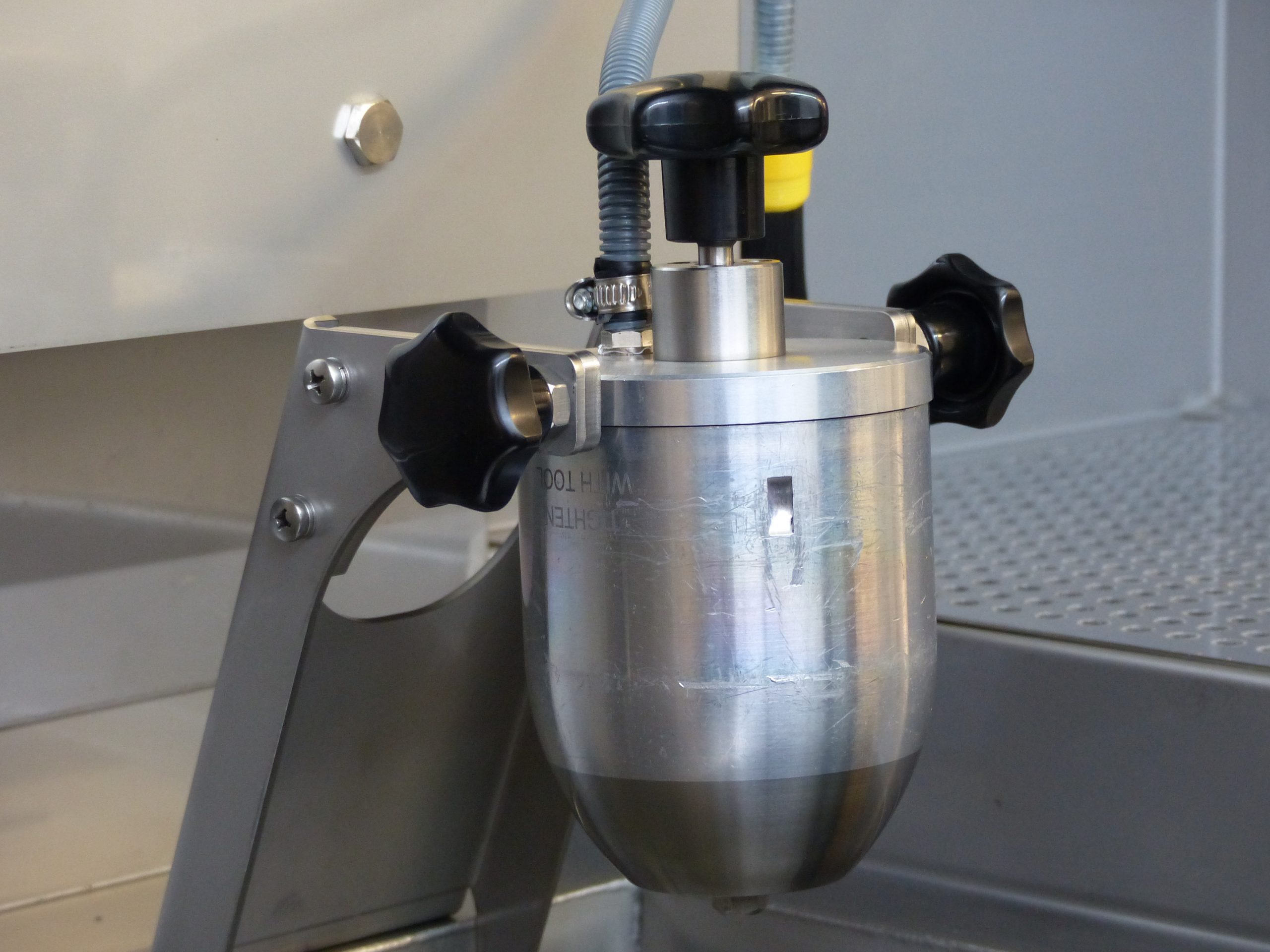 Requirements: Cleaning of agitator/mixer, container and suction cup gun in one unit