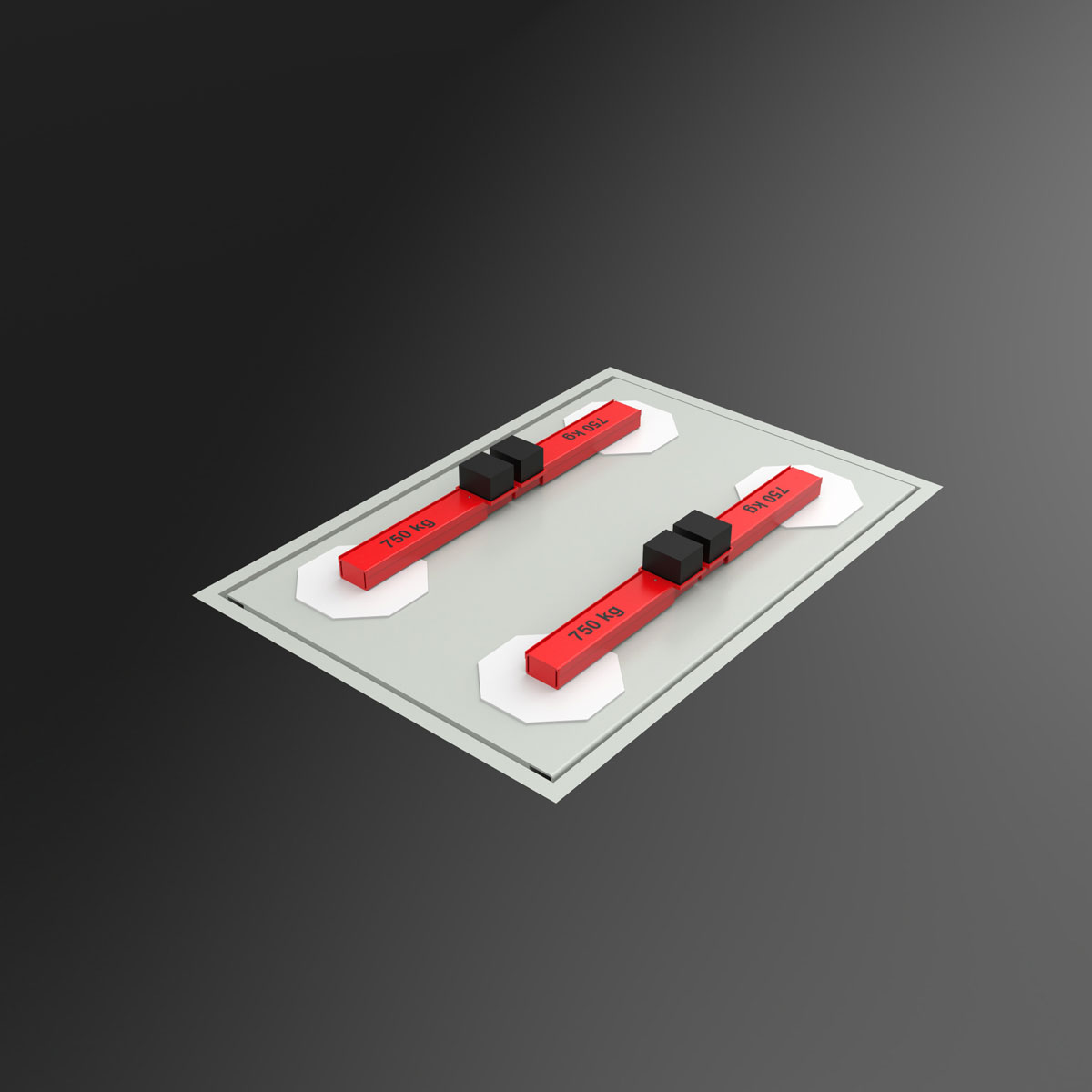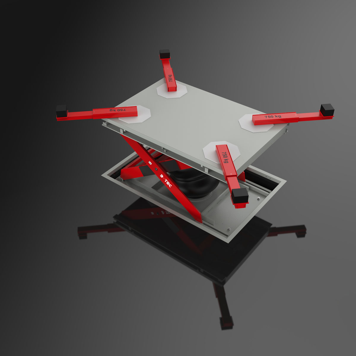Pneumatic lift with up to 3 tonnes lifting capacity for wheel-free lifting using the jacking points of the vehicle – in-ground version.