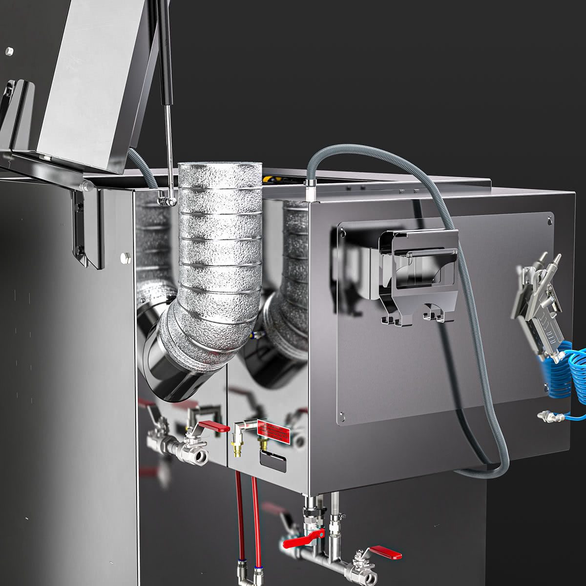 With the help of the series-standard B-TEC extraction system, hazardous vapours are immediately extracted from the unit as soon as the unit lid is opened.
