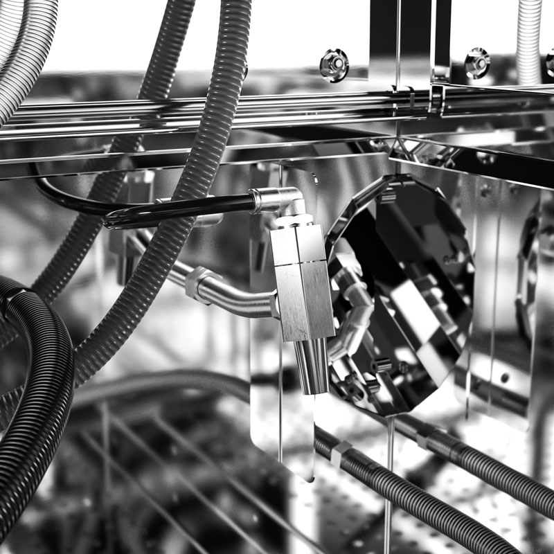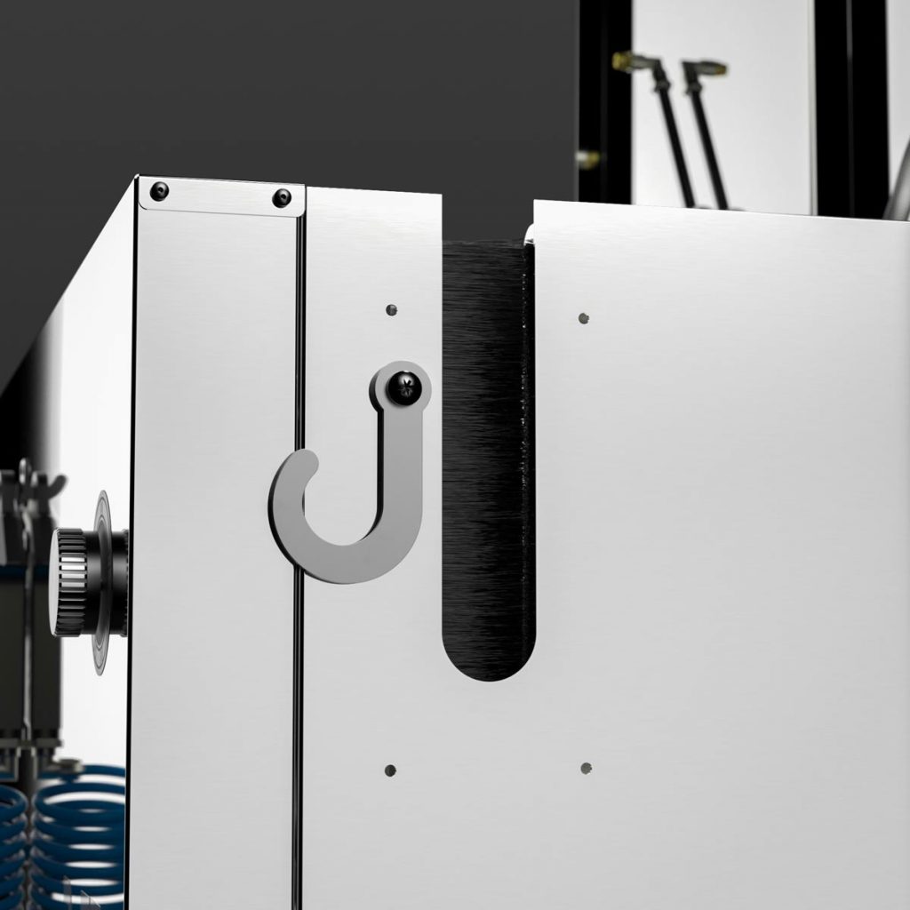 On the right-hand side of the unit, a tube-connected spray gun can be automatically cleaned from the outside.