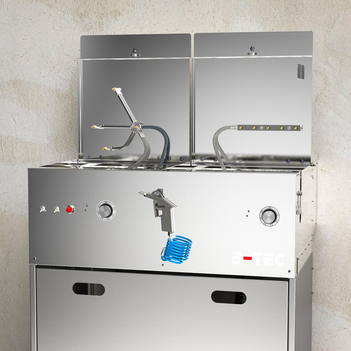 The Duplex-800 is the perfect spray gun washer for companies that use both gravity guns and tube-connected spray guns such as Airless, Airmix and pressure tank paint spray guns.