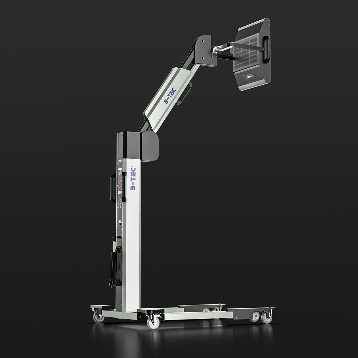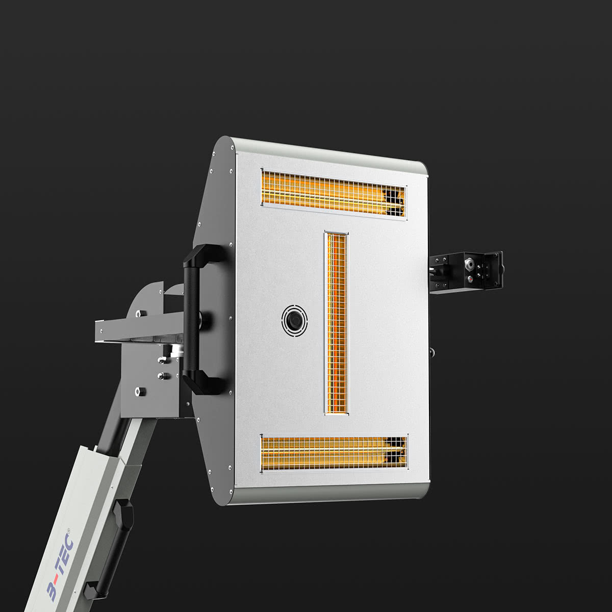 In addition to the outstanding drying characteristics with three gold-metallised emitters and reflectors and a drying area of up to 1000 x 1100 mm with excellent heat distribution, the IR-B03-Evolution is particularly impressive due to its height adjustability from 160 mm to 2650 mm, which means that even roof drying of SUVs such as the BMW X3 is no problem.