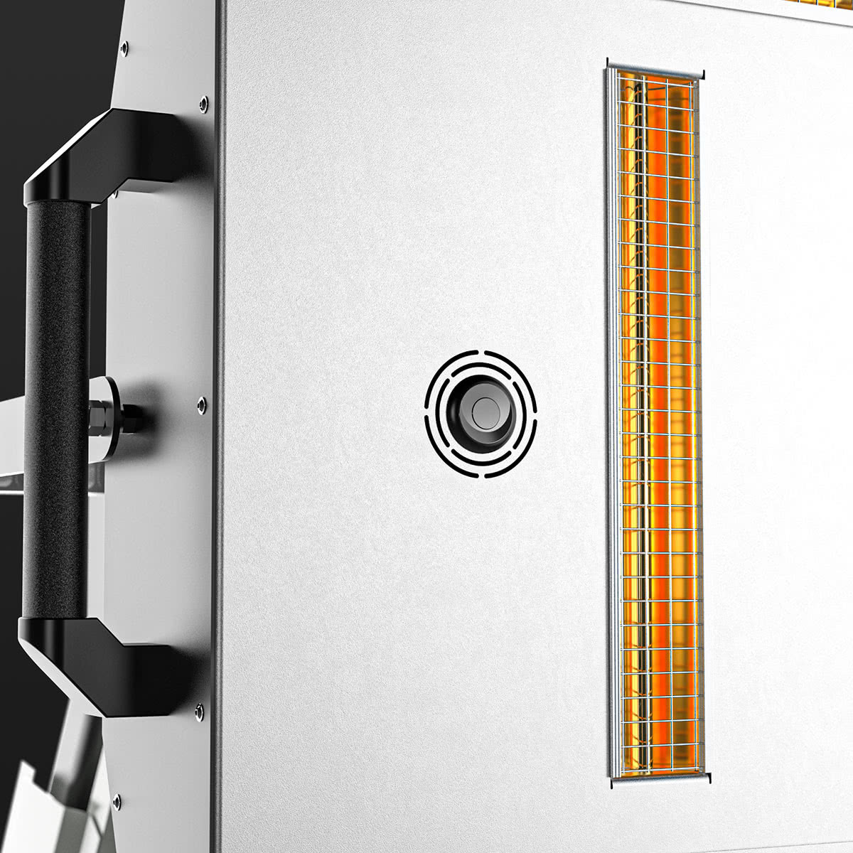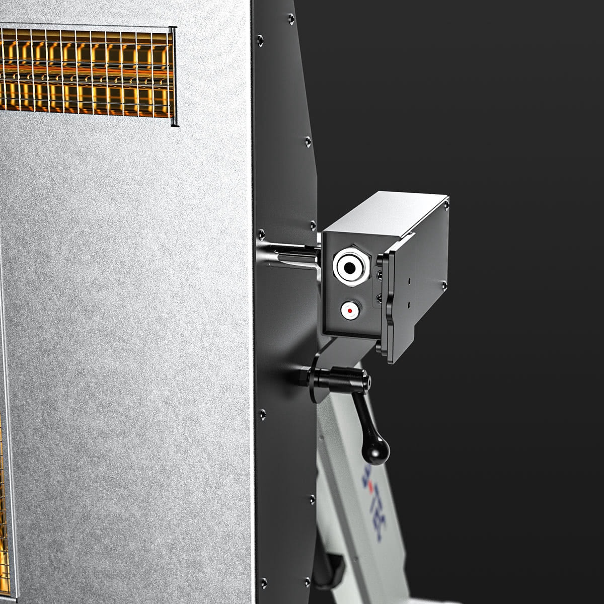 The IR-B03-Evolution is equipped as standard with a permanent and automatic ultrasonic distance sensor as well as an adaptive temperature sensor. The distance sensor makes it possible to monitor the perfect distance to the object at all times. The adaptive temperature sensor with automatic power-off function prevents overheating of, for example, sensitive plastic parts.