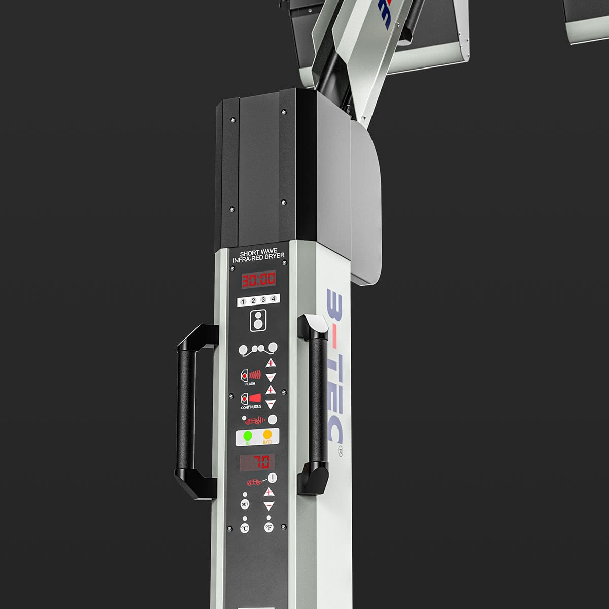 Like all B-TEC IR dryers (except IR-X), the IR-B08-Evolution also features 2-stage drying (flashlight / continuous drying) to heat the paint gently from the inside out, thus preventing paint problems such as “boiling” and “biting”.