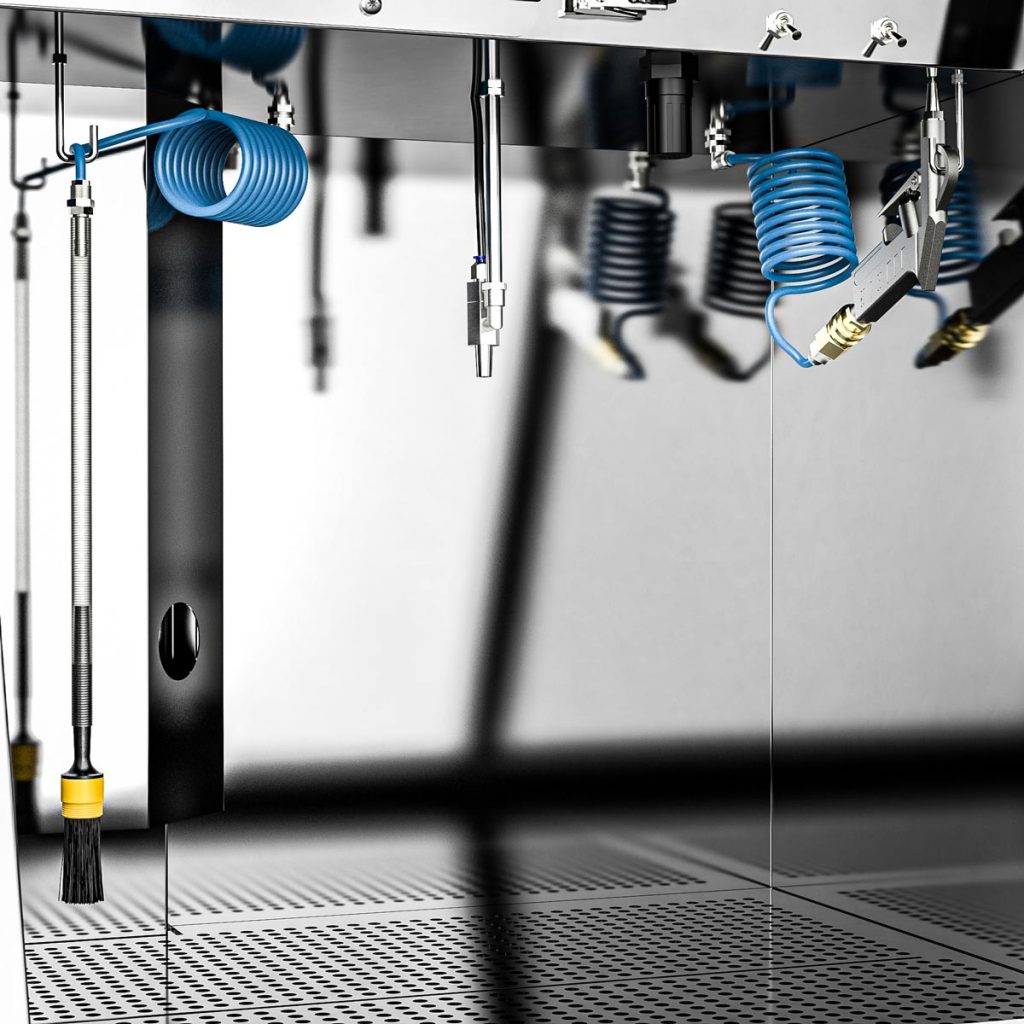 With the help of the B-TEC air flow system, the air channels are perfectly protected during automatic cleaning and contamination behind the air cap is prevented. The air cap does not need to be removed – less mechanical damage to paint and spray guns and high time savings.