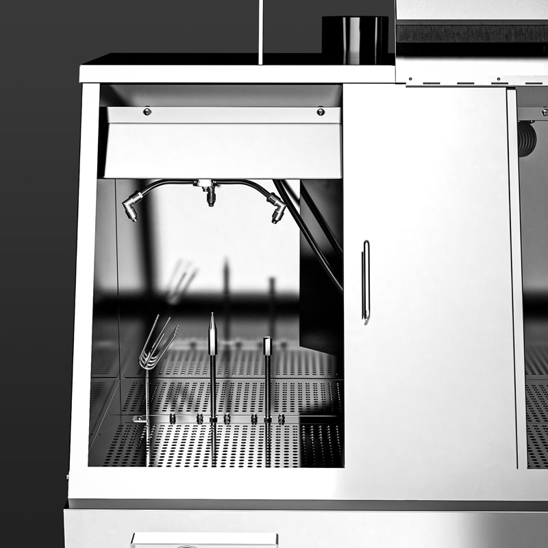 As the world’s first paint spray gun washer with ergonomic front access, the K-1200 was awarded the German Federal Prize for outstanding innovative achievements for the craft and, thanks to its generous dimensions, offers an excellent basis for individual customer requirements. Examples of customer projects already realised can be found in our Custom Designs section.