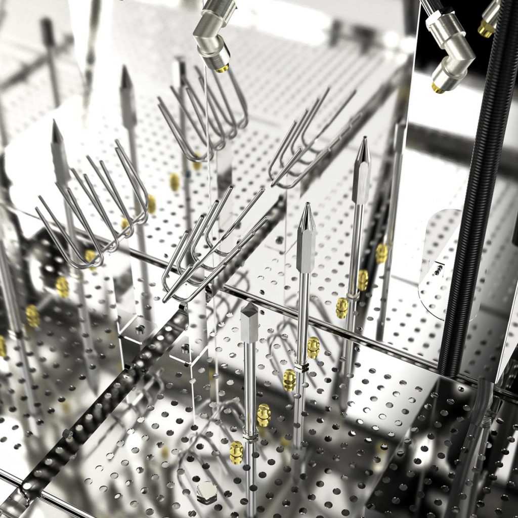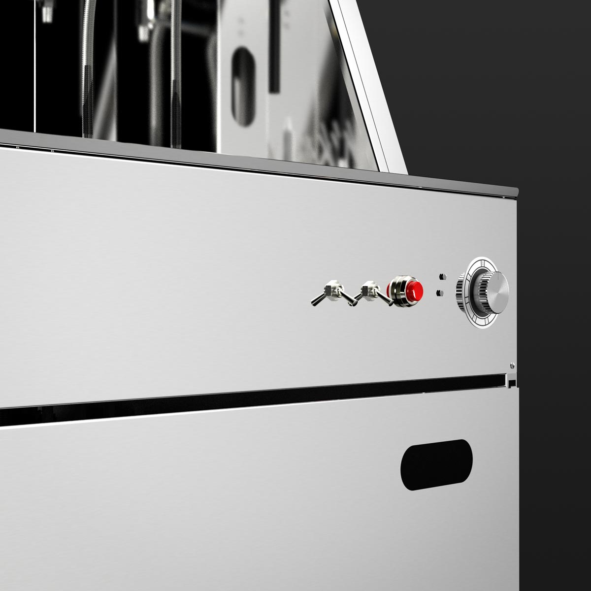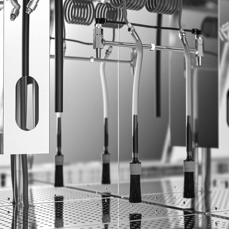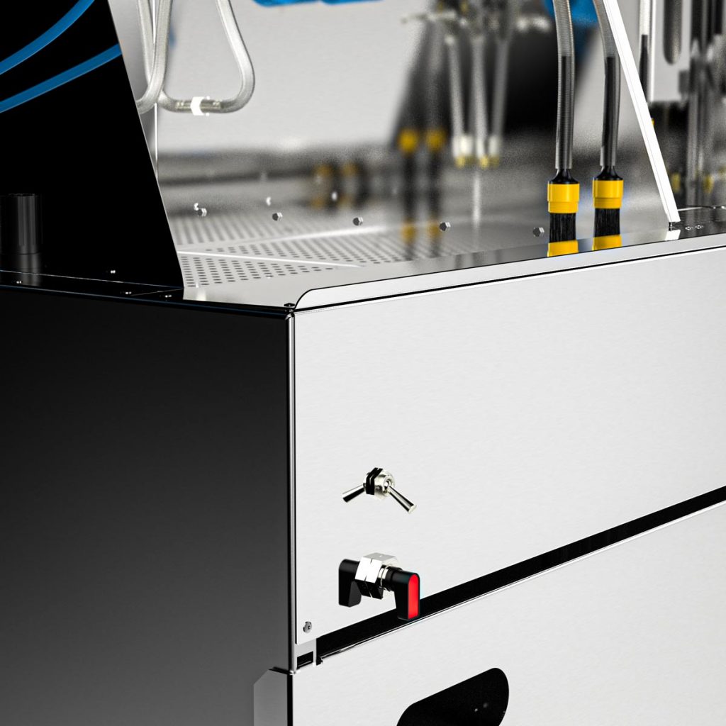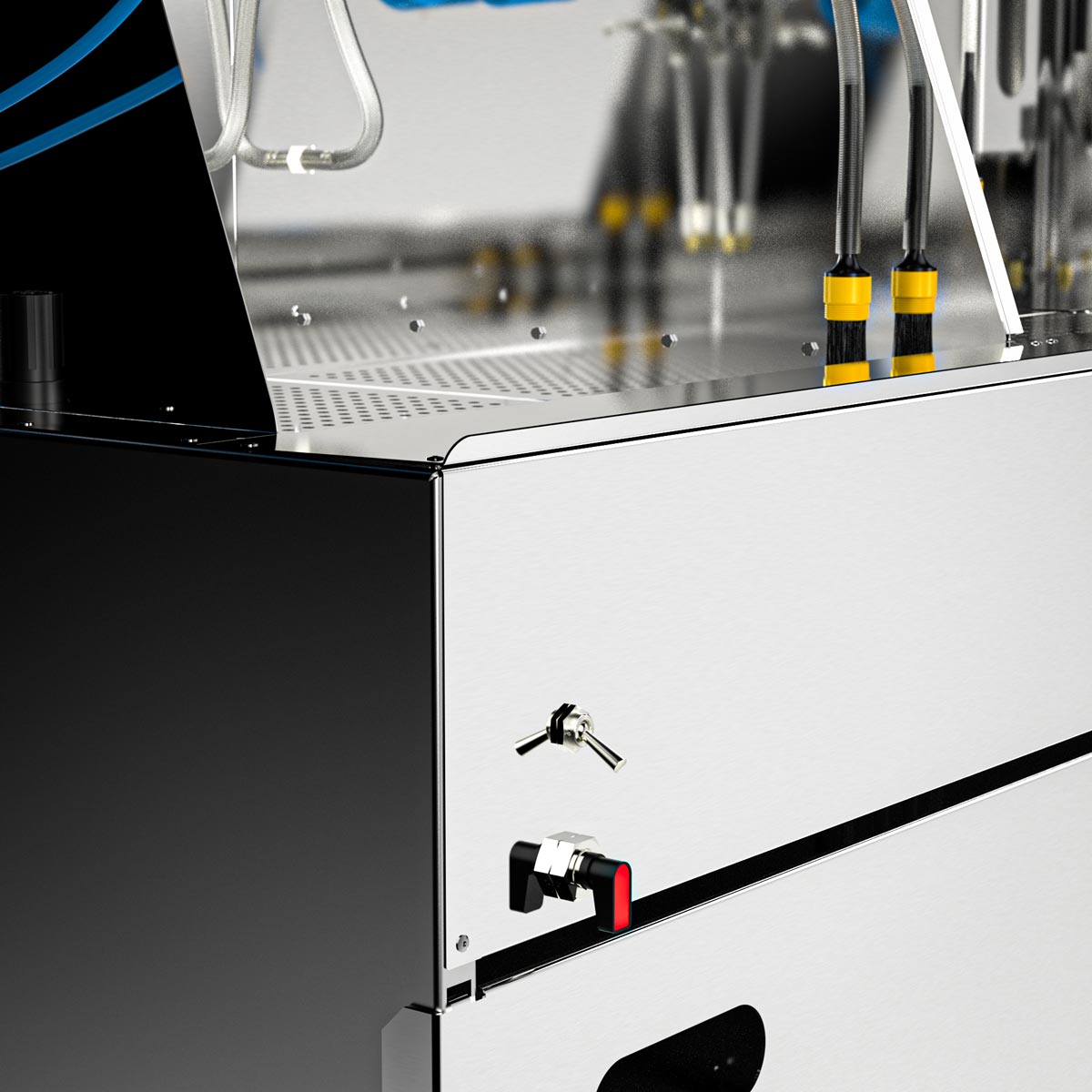 The ergonomic design with comfortable front access enables optimal viewing conditions on all features of the washer – without glass plates or bezels which prevent good visibility. Ergonomic and fast cleaner change due to moveable collection trays / bunds.