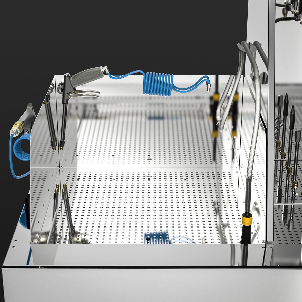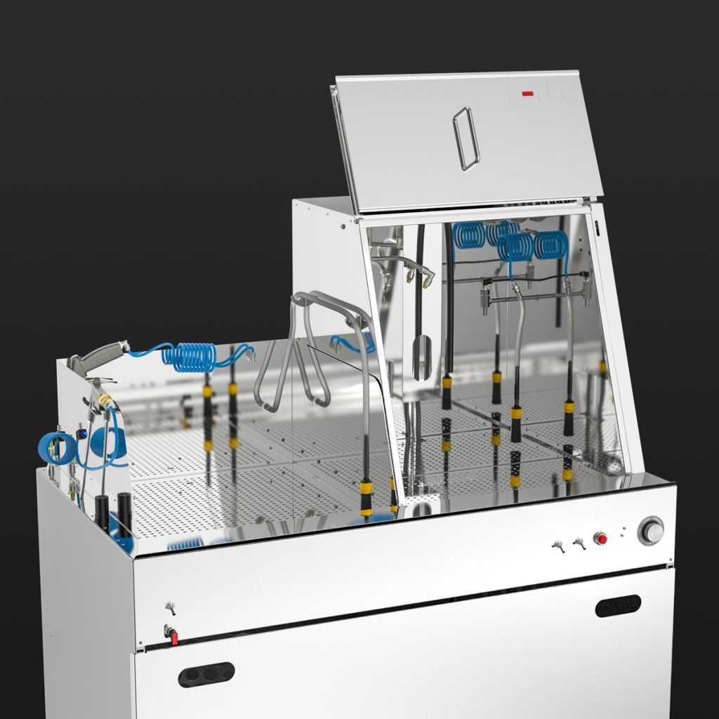 - Left-hand side for manual cleaning of water based paints, right-hand side for automatic and manual cleaning of solvent based paints