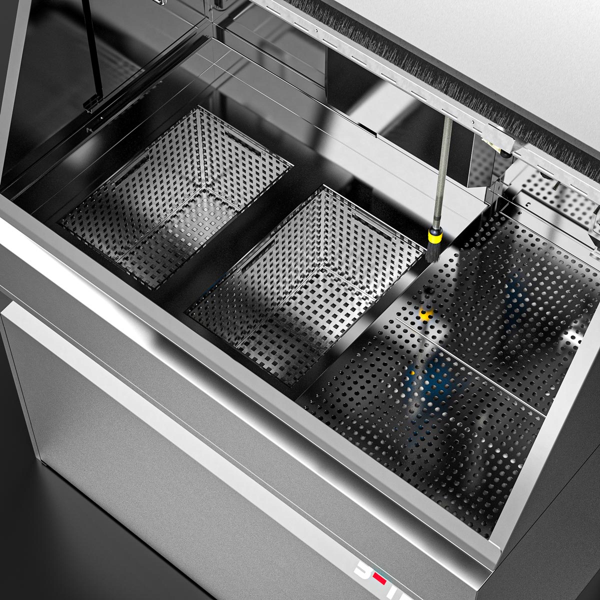 In addition, we offer you the possibility to define the size of the immersion tank individually. Do you need a single large tank or a larger manual cleaning station? No problem – just contact us!