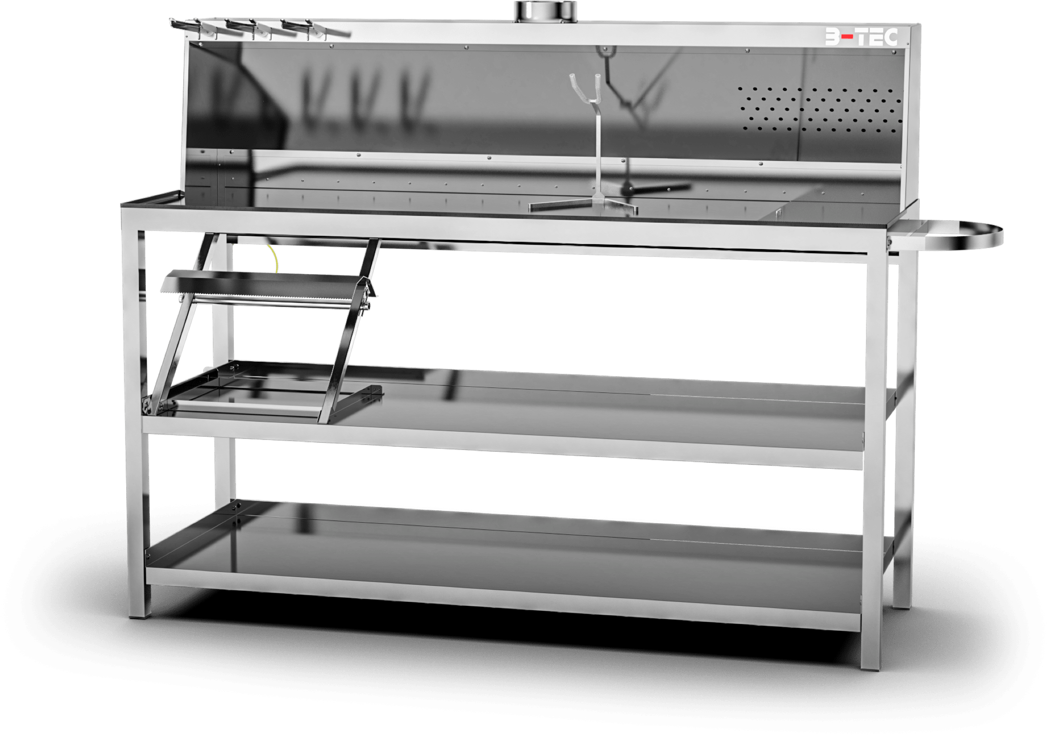 - two stable storage shelves made of stainless steel
