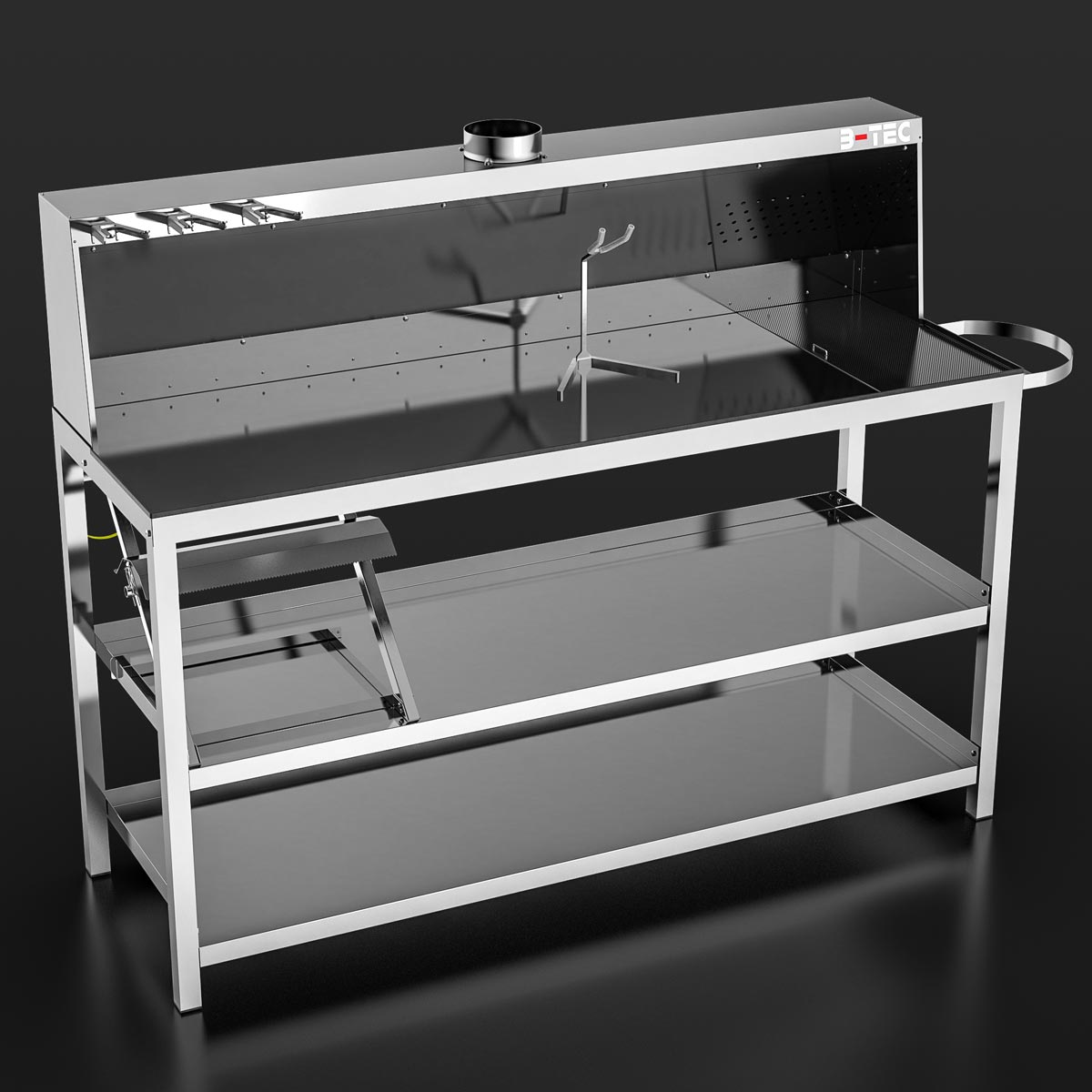 - two stable storage shelves made of stainless steel