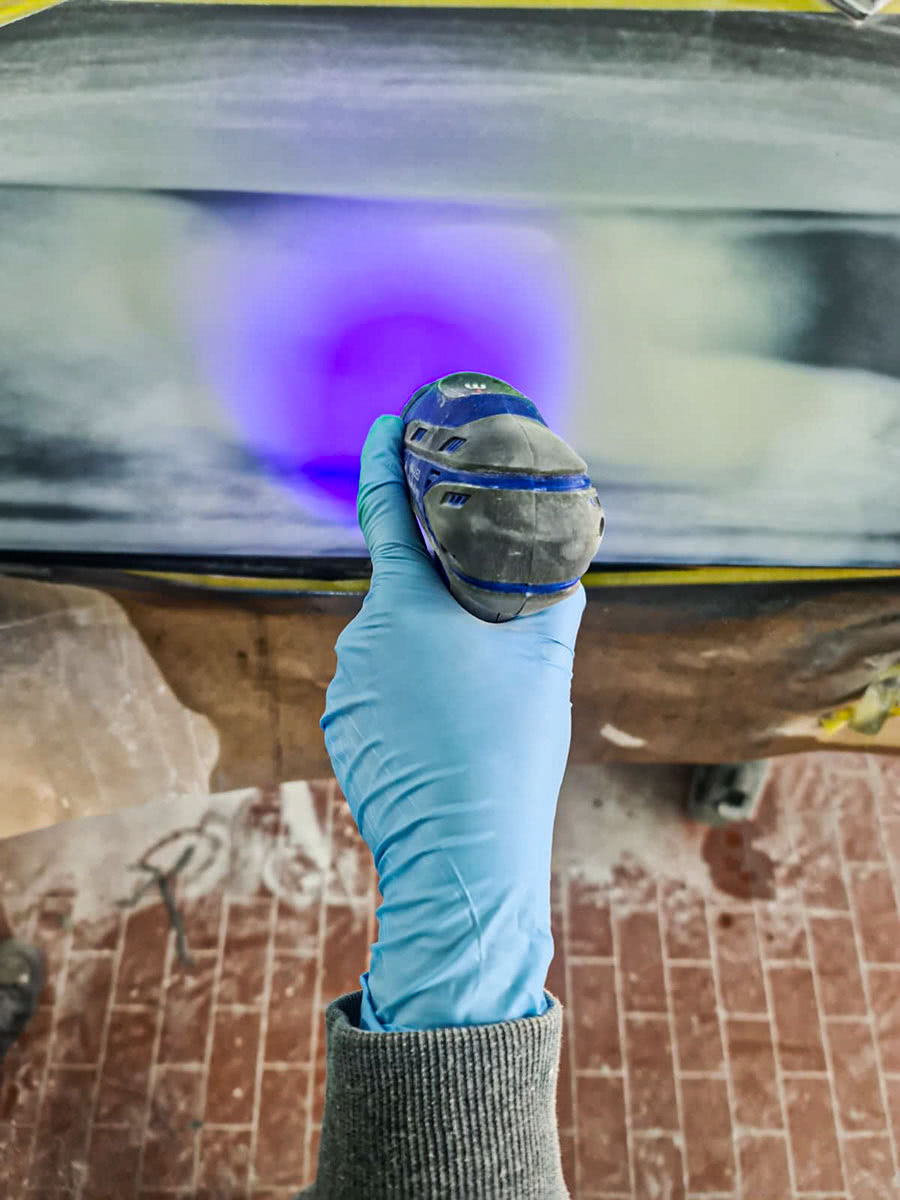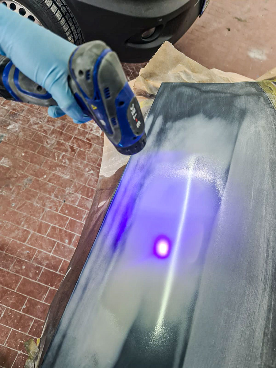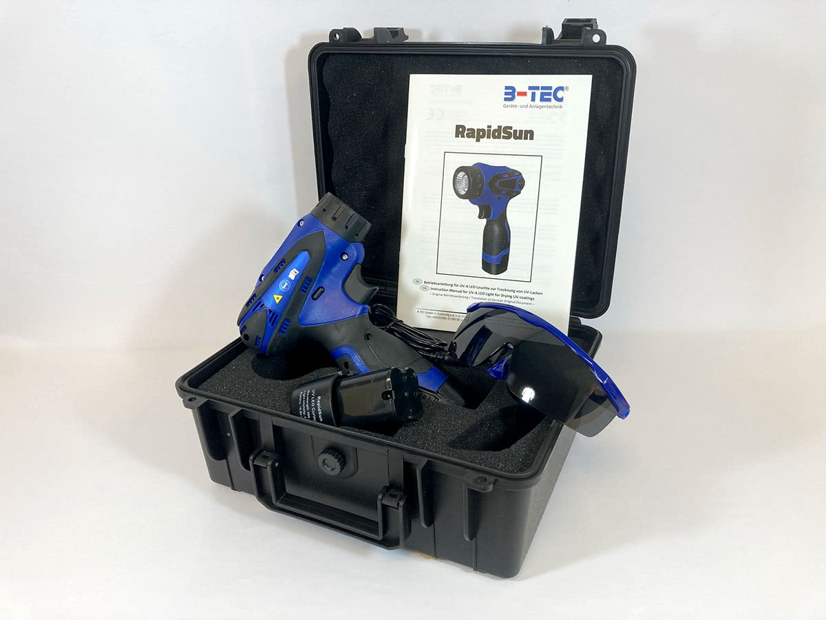 RapidSun is a portable LED UV-A drying light for quick and easy spot repair drying of UV-A coatings.