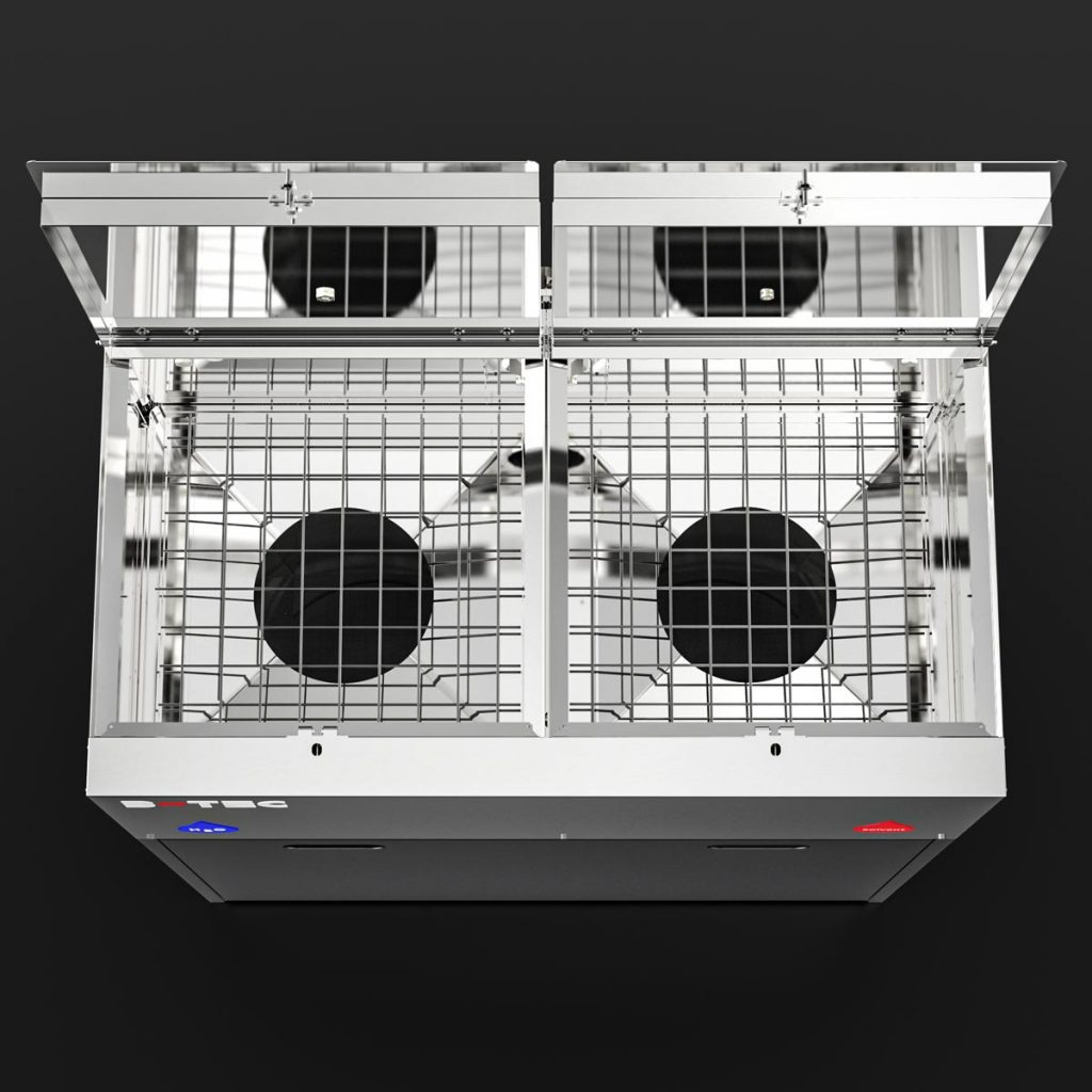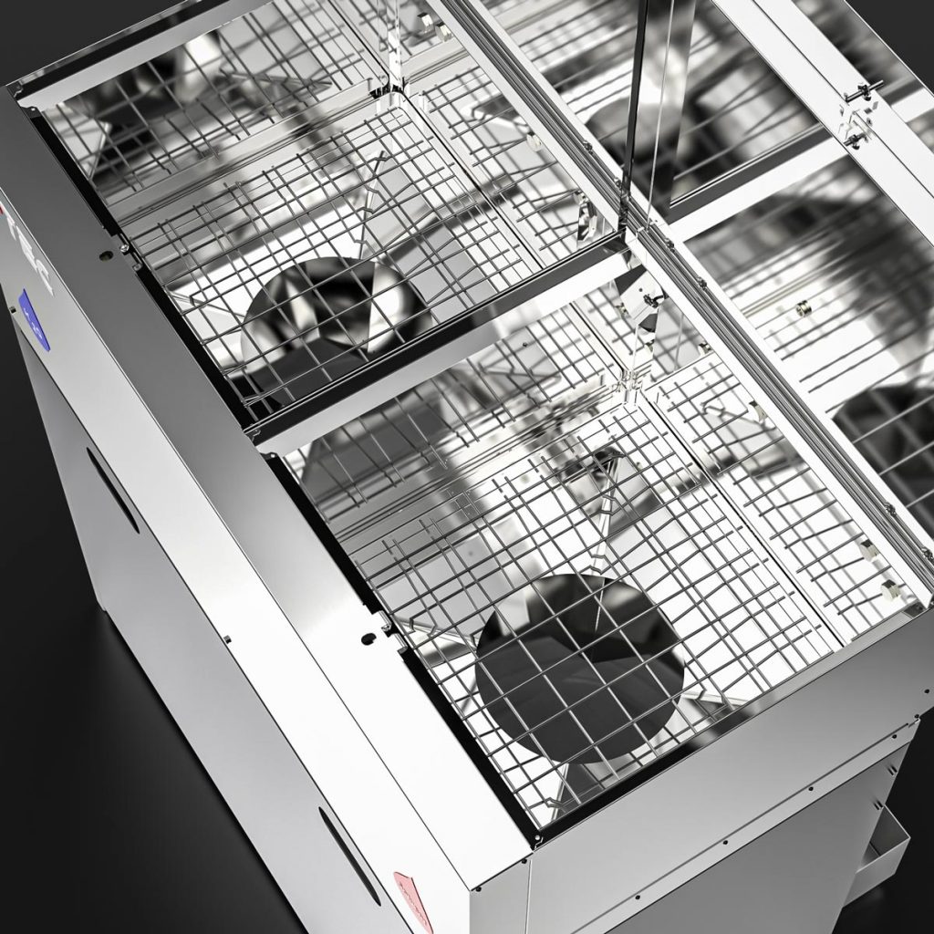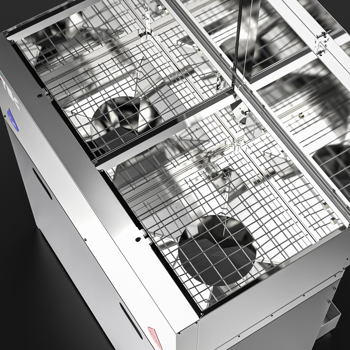 When the lids are opened, the powerful exhaust air system starts automatically to extract dangerous vapours and unpleasant smells. Several paint cans of up to 5 litres can be emptied quickly and easily upside down on the drip screen.