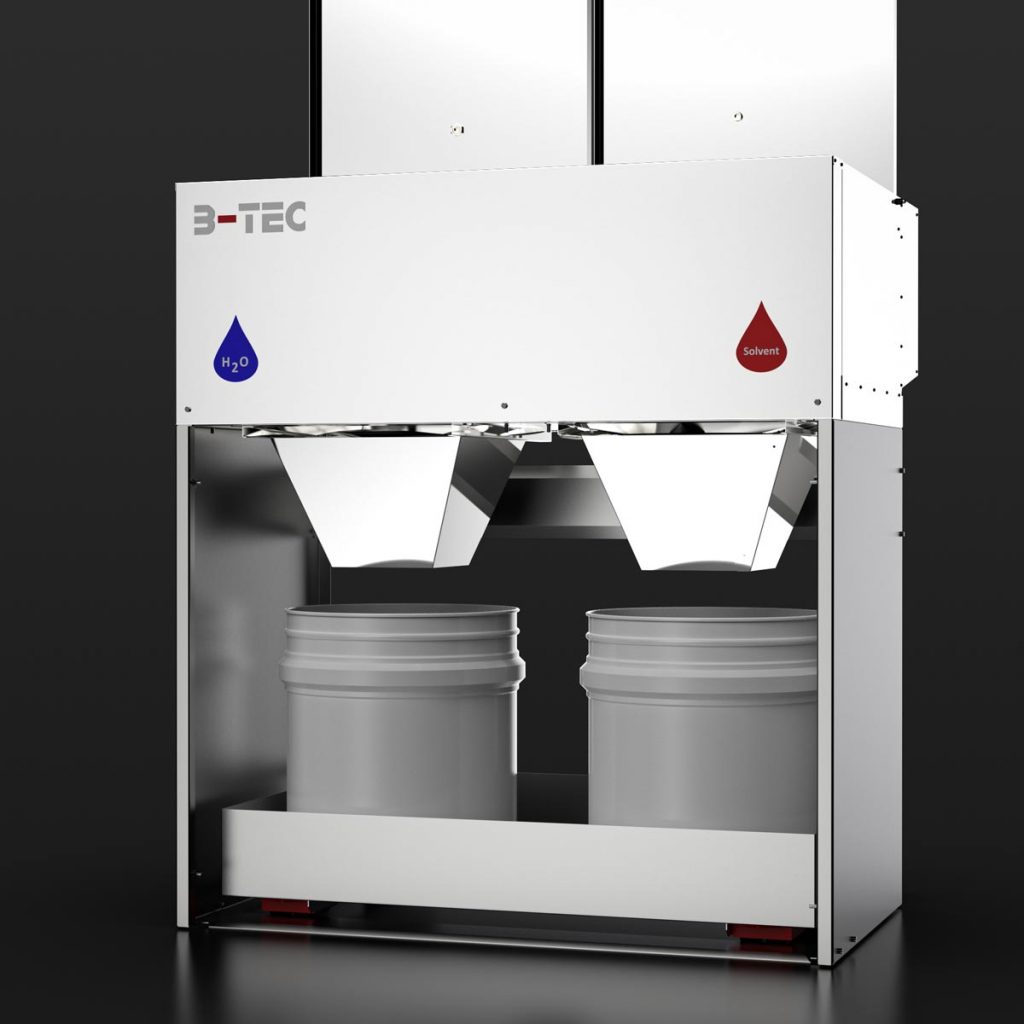 The paints simply run into the collection containers with waste bags located underneath. The container can be changed easily and conveniently using the mobile collection tray.
