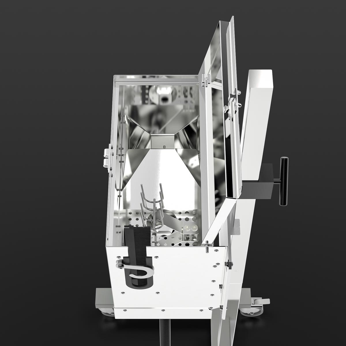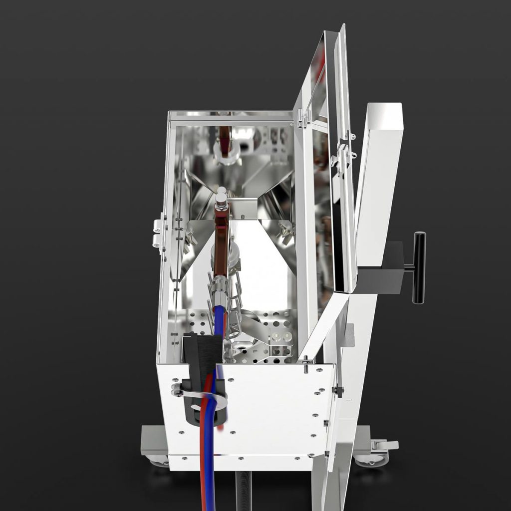 The S-800 can also be operated with all pump technologies. A mobile and height-adjustable base frame is part of the standard equipment. The S-800 can also be excellently combined with the SR-800 and R-800 washers for external cleaning – the complete cleaning station for gun and hose package.