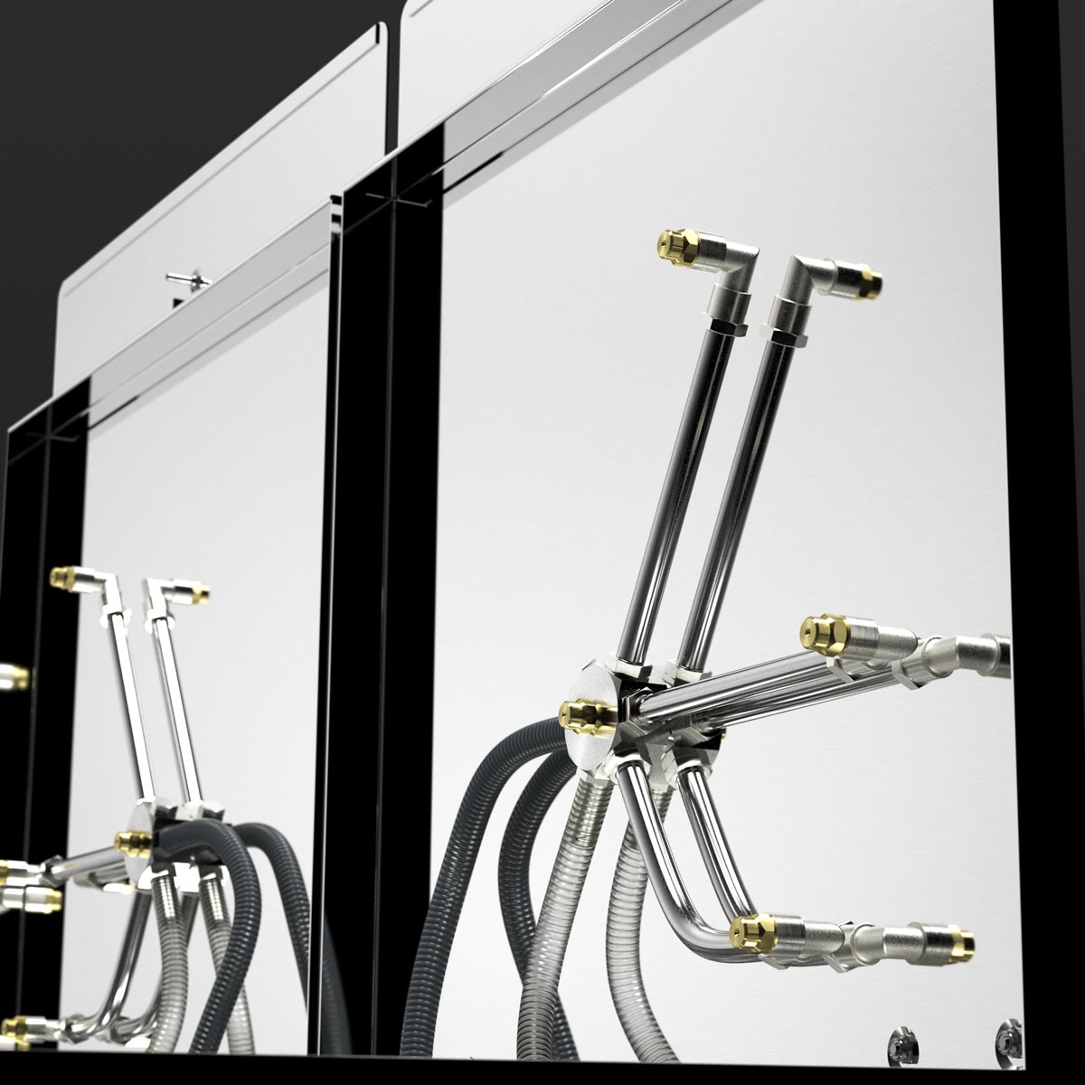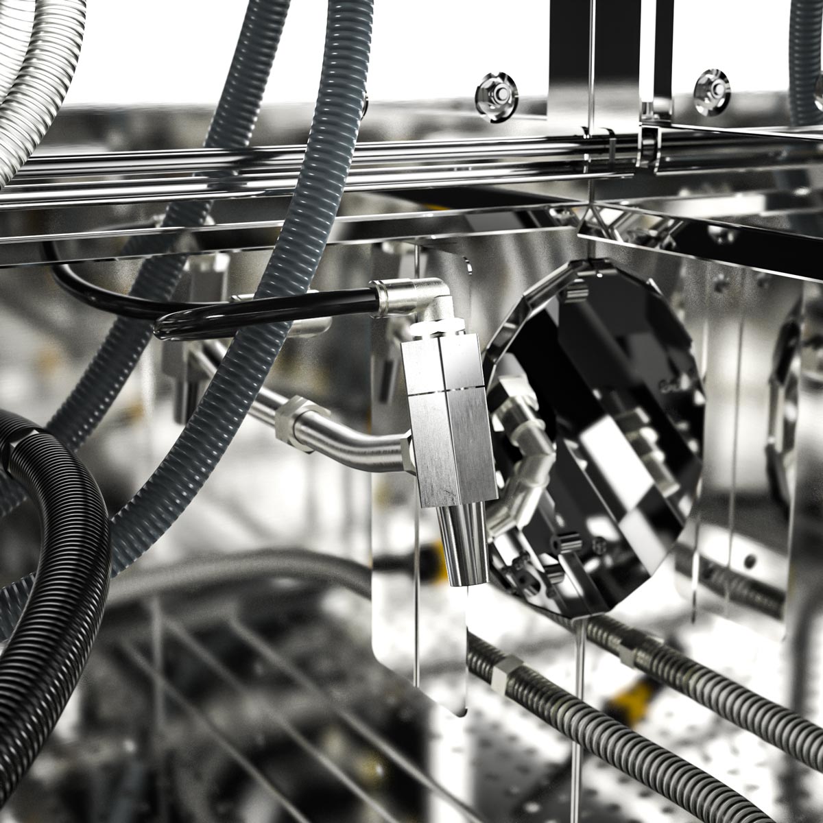 Bright cleaning chambers due to the utilization of stainless steel. No utilization of light absorbing plastic.