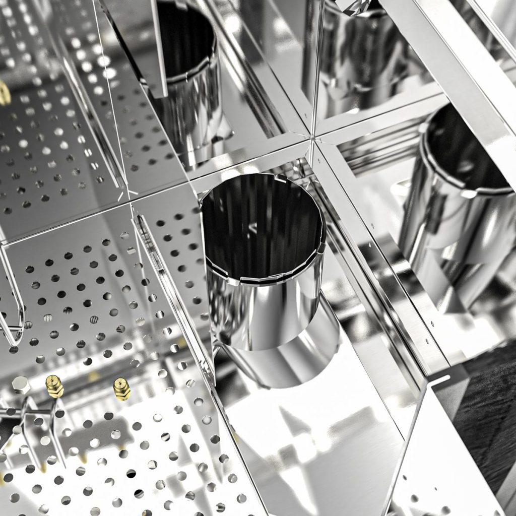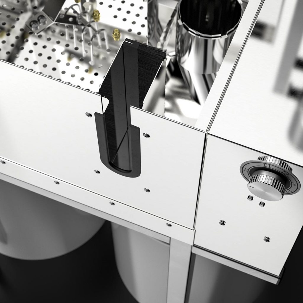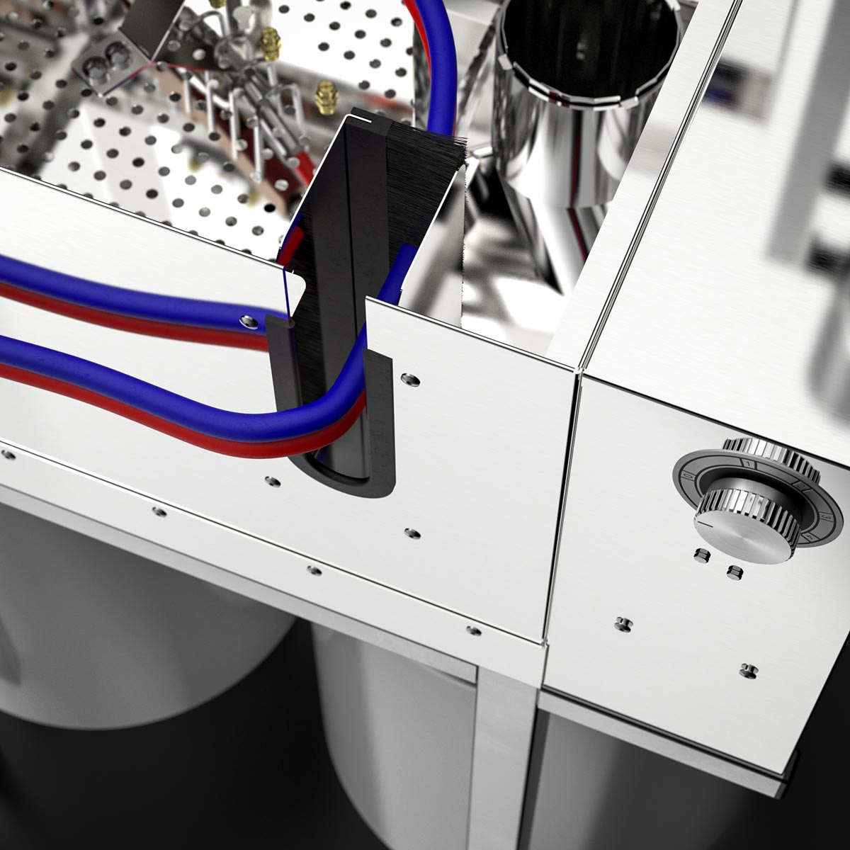 Bright cleaning chambers due to the utilization of stainless steel. No utilization of light absorbing plastic.