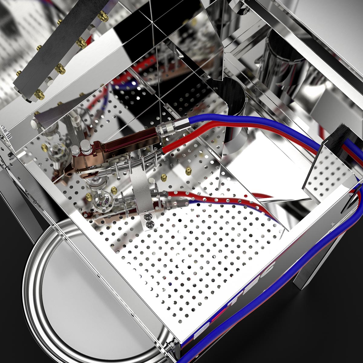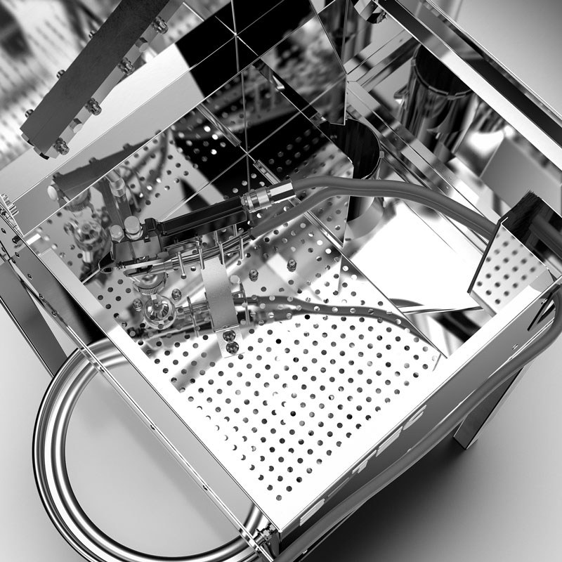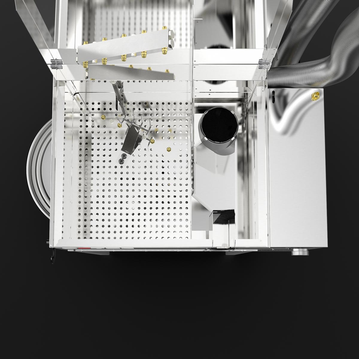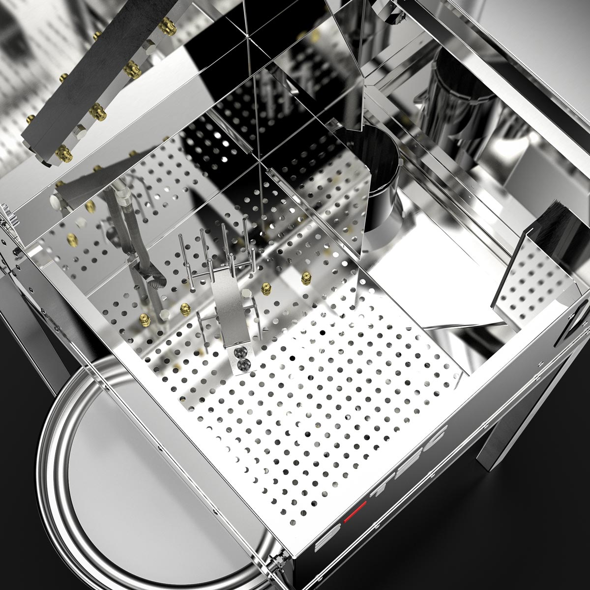 Bright cleaning chambers due to the utilization of stainless steel. No utilization of light absorbing plastic.