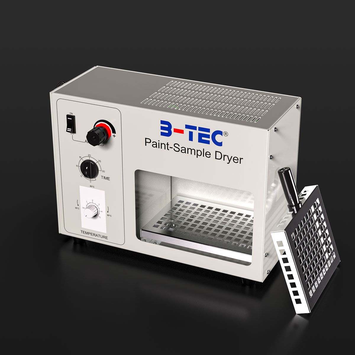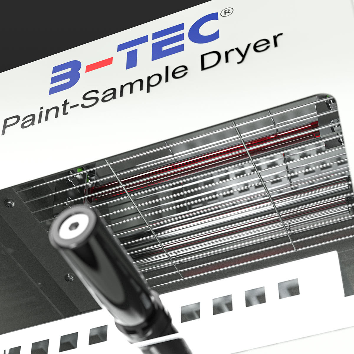 Dryer for fast drying of water-based paint spray samples with infrared and compressed air.
