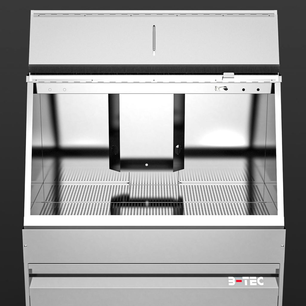 - Large work station with powerful B-TEC extraction system for handling paints and/or solvents