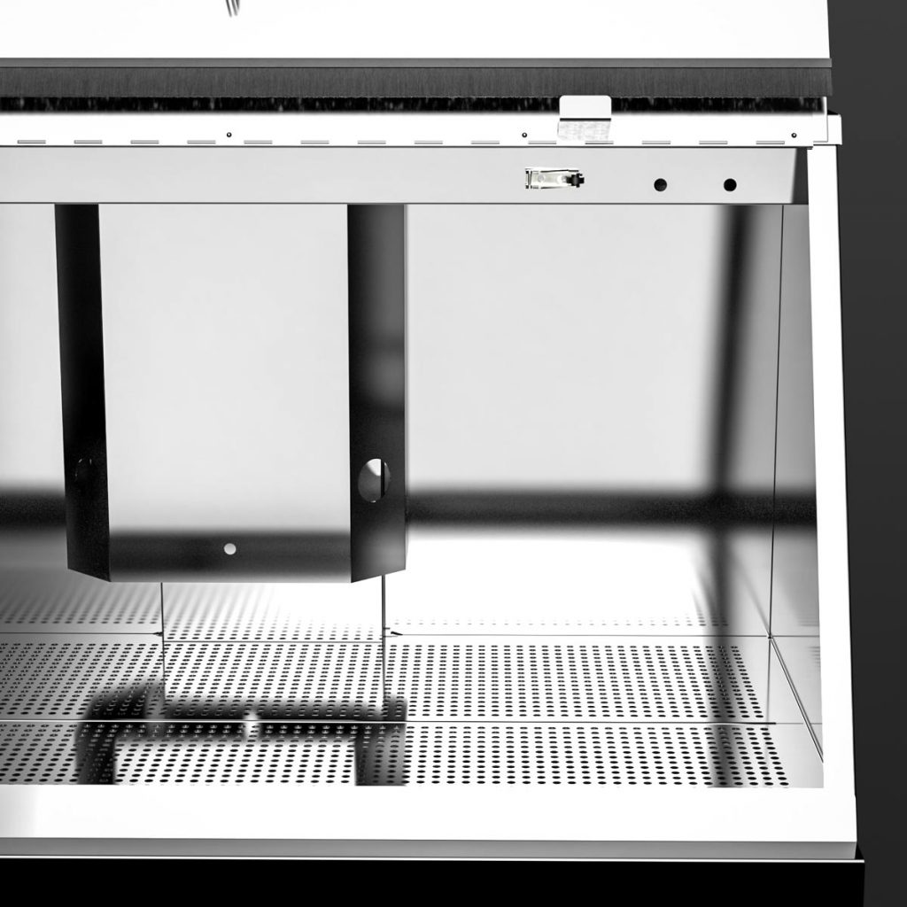 - Options: stainless steel flap with automatic extraction activation (pretends dust ingress); Pneumatic exhaust solvent saver, ATEX-Version
