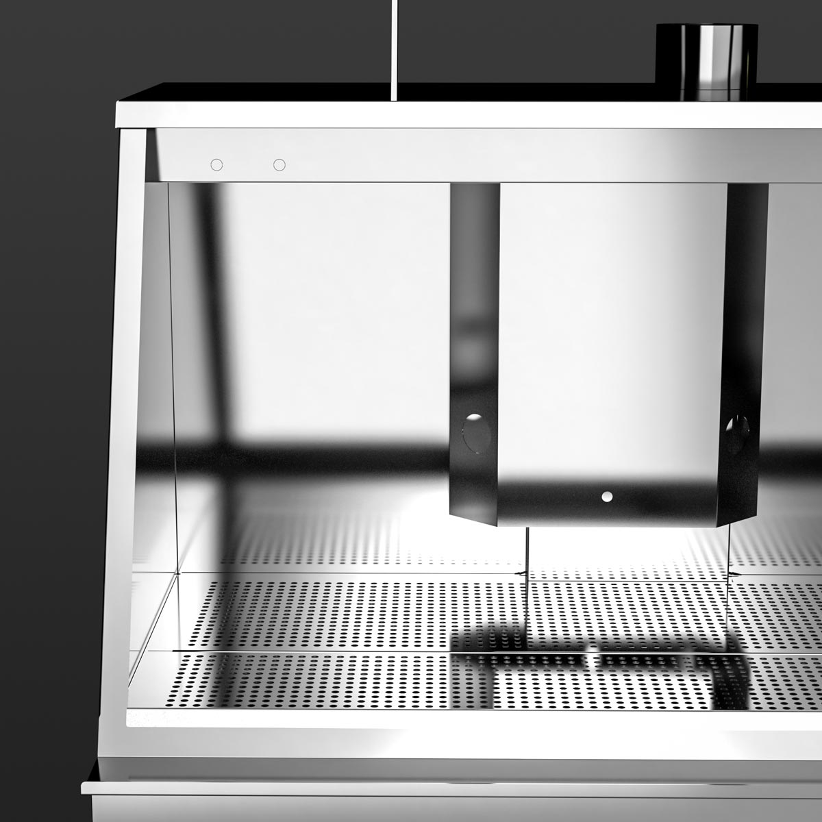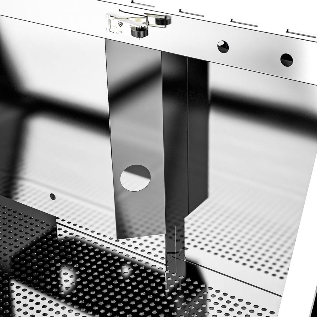 Bright cleaning chambers due to the utilization of stainless steel. No utilization of light absorbing plastic.